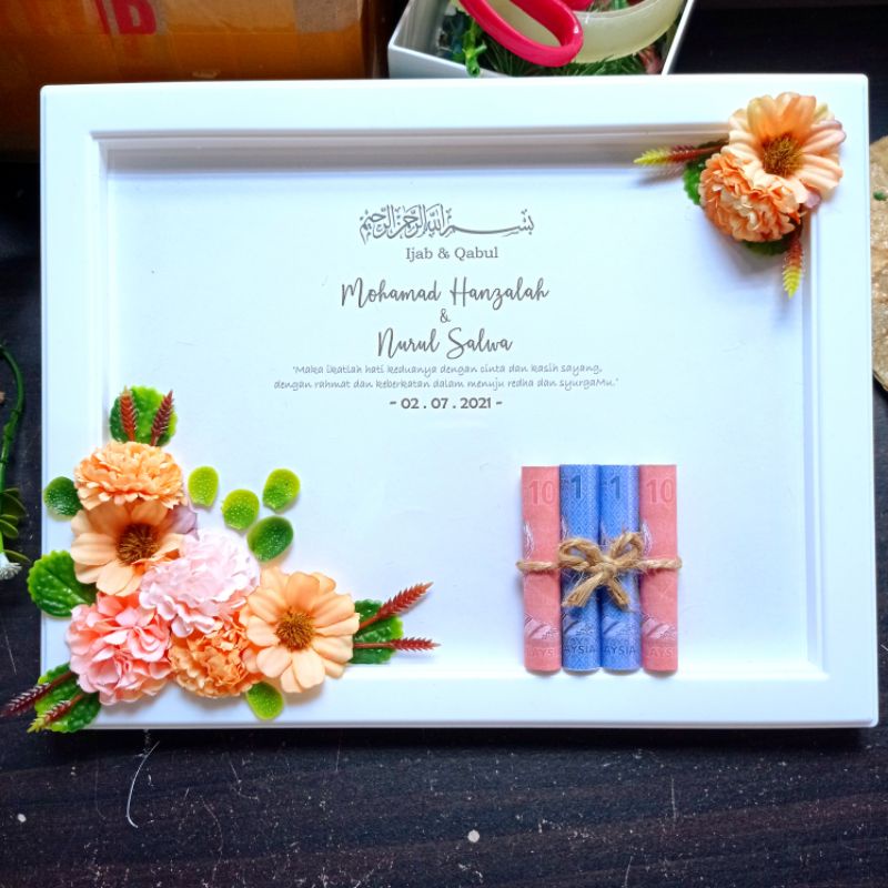 Dekorasi & gubahan frame 3d mas kahwin hantaran surprise bouquet photobooth dekorasi harijadi. Choose from a wide range of stylish frame duit mas kahwin on lazada.com.my. Frame di hiasi dengan bunga foamiran handmade. Pembelian frame dengan gubahan bunga dan nama sekali (tidak termasuk duit mas kahwin) pembayaran mengikut harga yang dipaparkan duit mas kahwin .